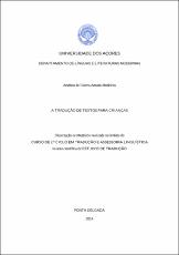 Medeiros, Andreia de Fátima Arruda. "A tradução de textos para crianças". 2015. 82 p.. (Dissertação de Mestrado em Tradução e Assessoria Linguística). Ponta Delgada: Universidade dos Açores, 2014.